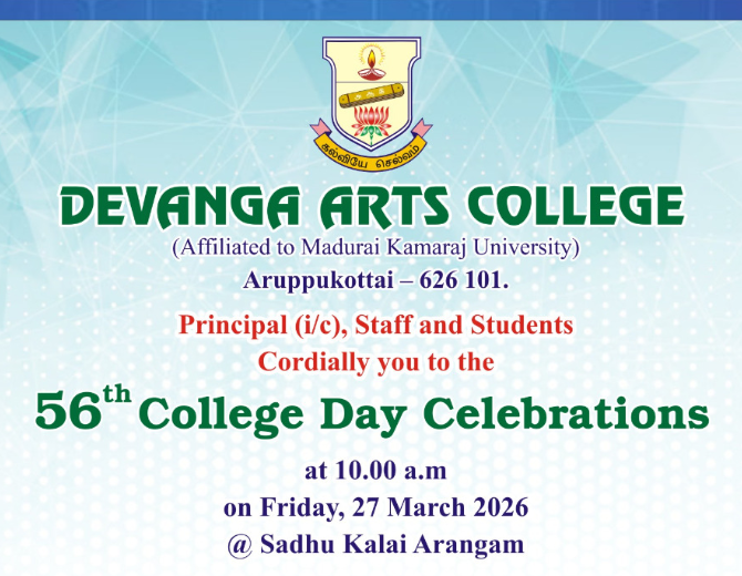 Devanga Arts College, affiliated with Madurai Kamaraj University, is proud to announce its 56th College